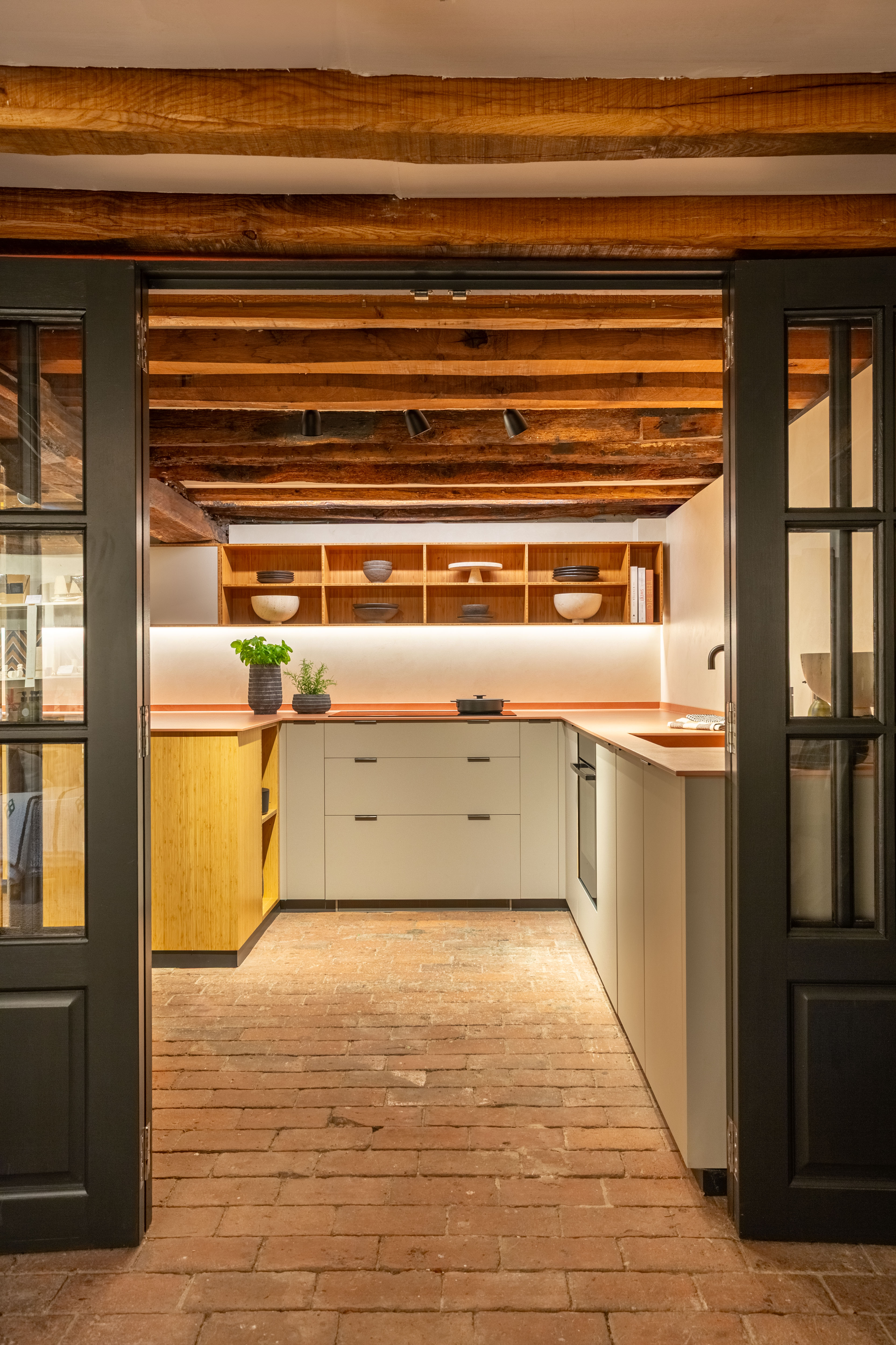 A stop-you-in-your-tracks kitchen that at once feels contemporary and at home in a 200-year-old building.